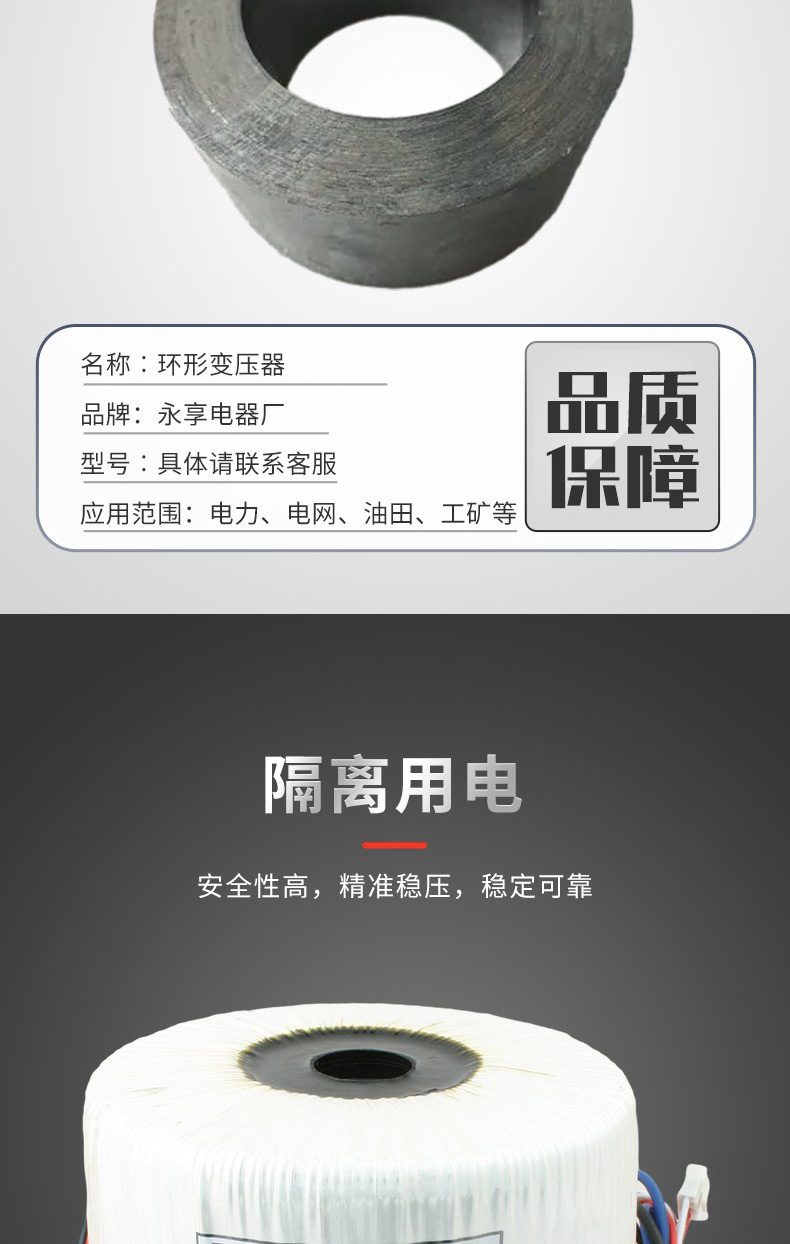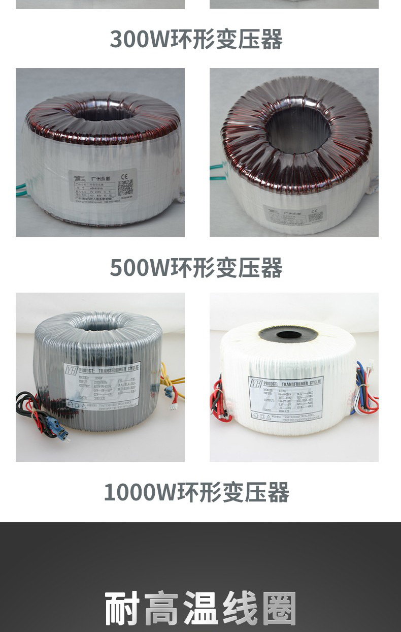 300W铜线环形变压器 灌封式防水防潮 单相配电压器 可定制